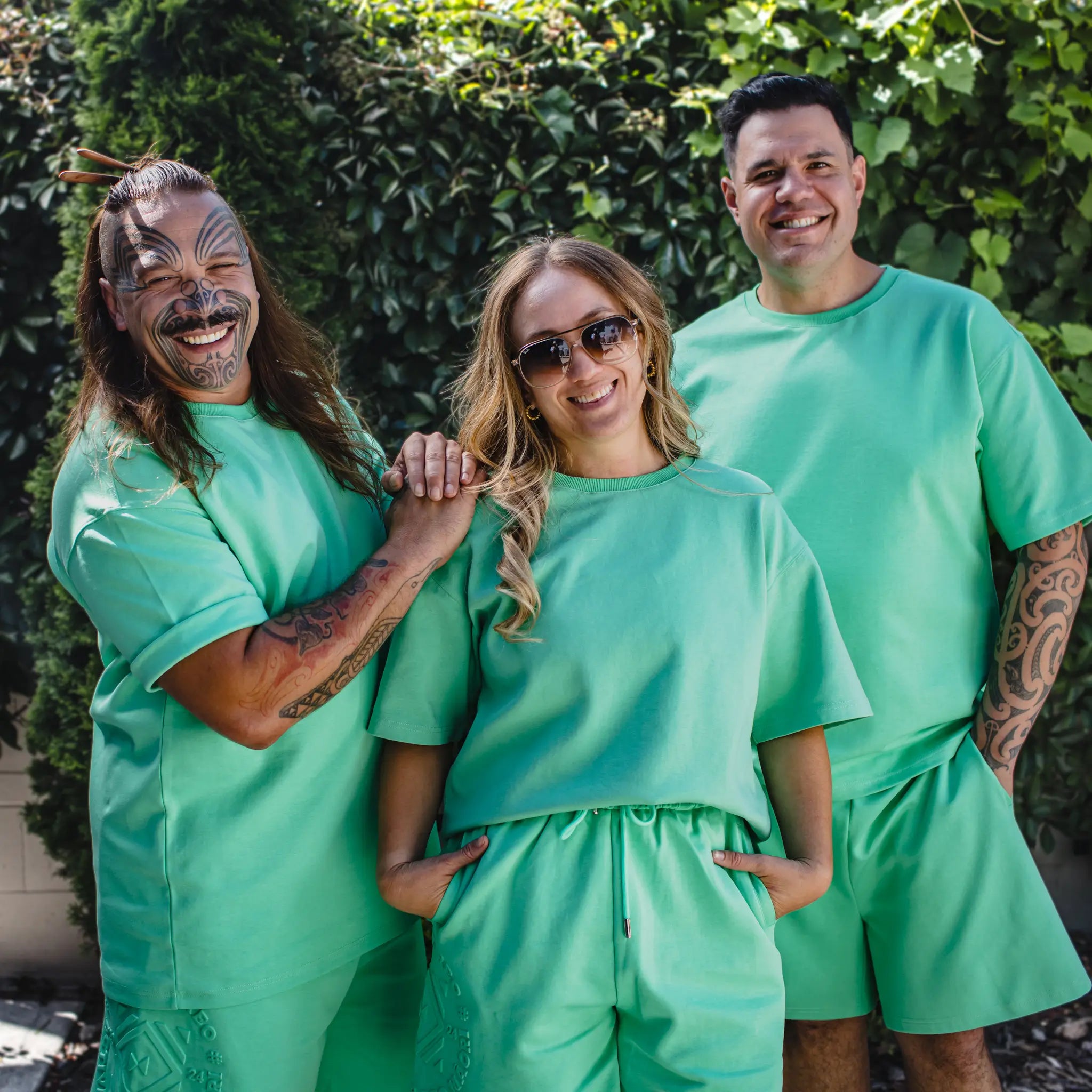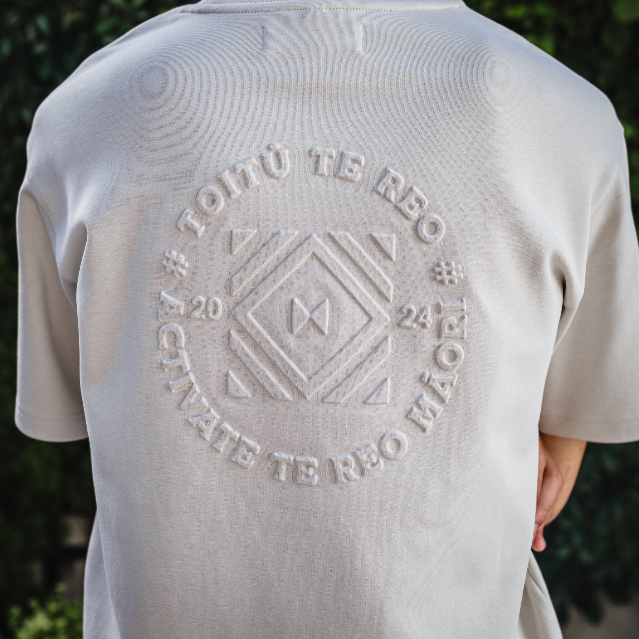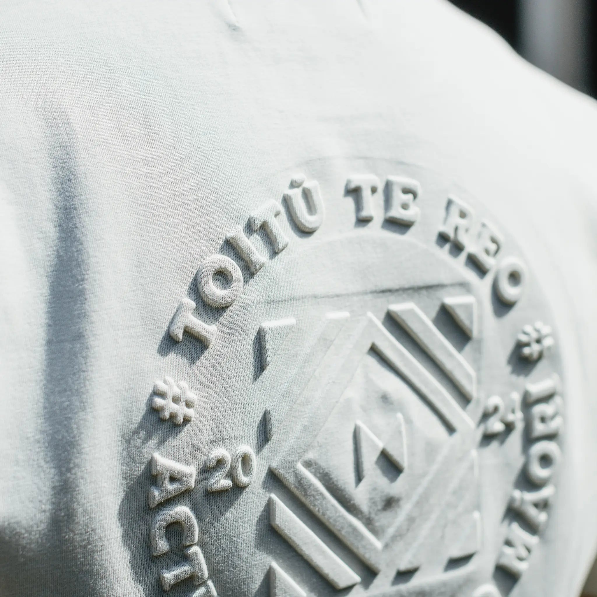 Available in mint and cloudy grey, this range features an embossed waharua pattern on the back, symbolising commitment and courage in using te reo. Made from the highest-grade GSM 100% organic cotton with double stitching detail, this over-sized tee is super soft, durable, and comfortable to wear.
